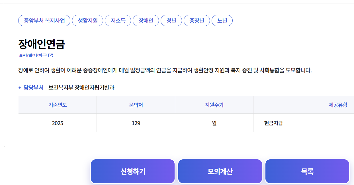 - 메인화면 - 장애인 연금 검색 - 신청하기