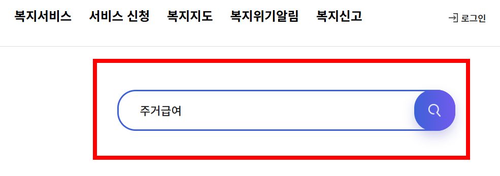 - 상단 메뉴에서 '온라인 신청' 또는 검색창에 '주거급여'를 검색합니다.