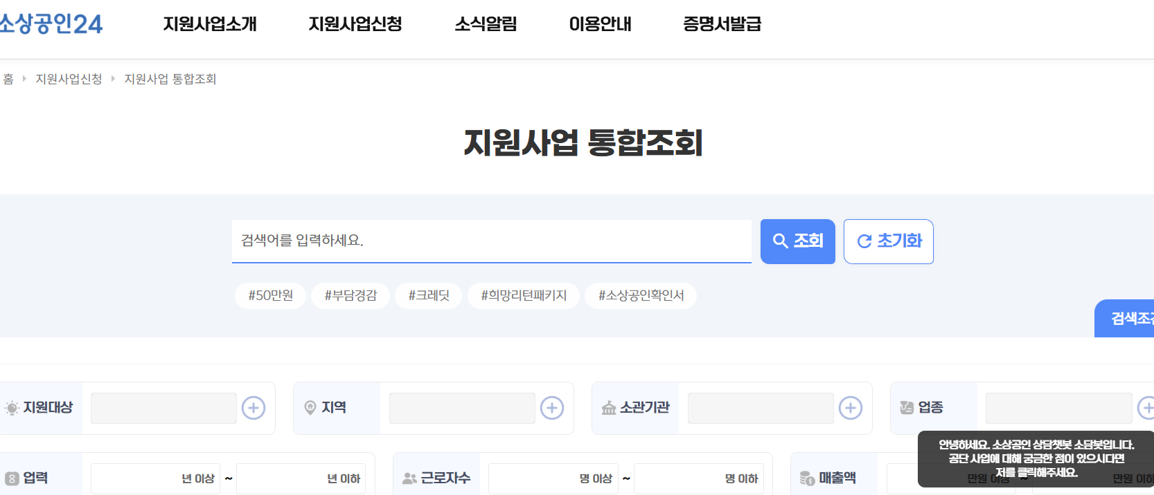 [지원사업신청] - [지원사업통합조회] 이동합니다.
